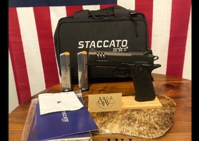 It’s chambered in 9mm because your wrists like recoil management, your wallet likes ammo prices, and your targets like the attention. Comes with the original Staccato soft case, factory paperwork, and two (2) double-stacked magazines — enough firepower to look responsible but dangerous at the same time.