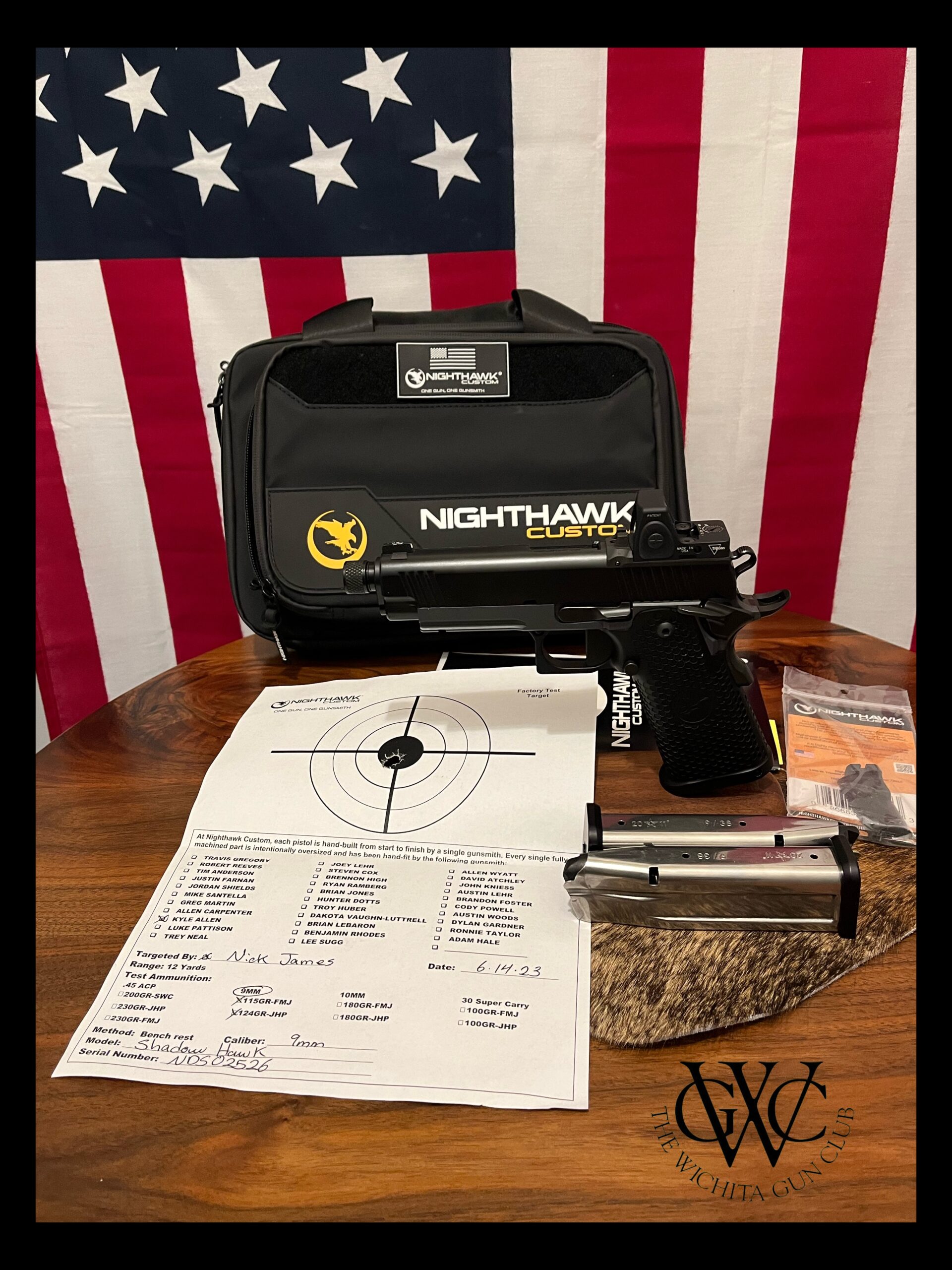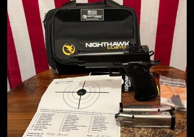 This unfired threaded barrel Nighthawk Shadow Hawk Double Stack is ready for your collection. Original paperwork, bag and rear sight are included. The Trijicon RMR makes this pistol range ready as well. This would be $6300+ to recreate. Pistol test target is dated 06/14/2023.